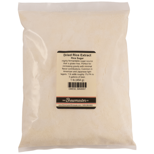Dried rice syrup solids, used an an adjunct in brewing. Rice extract provides fermentable sugar, but has a relatively light, neutral flavor. Use it in beers when you want to increase the alcohol level but not add the residual sweetness that barley malt extract can impart.