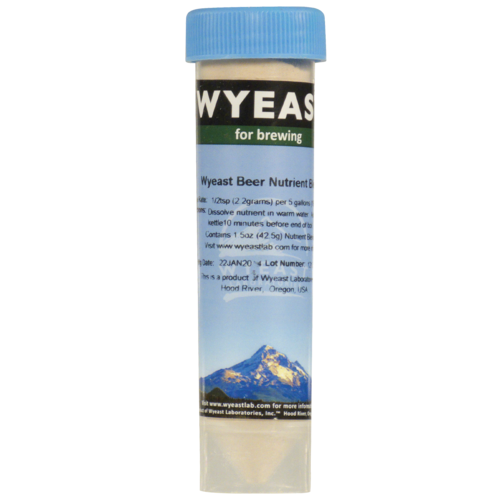 Wyeast nutrient blend for yeast propagation and brewing. A blend of vitamins, minerals, inorganic nitrogen, organic nitrogen, zinc, phosphates and other trace elements that will benefit yeast growth and fermentation. Additional nutrients are most valuable during yeast propagation and sluggish or stuck fermentations. Supplementing with nutrients will reduce lag time, improve viability and provide consistent attenuation rates.
